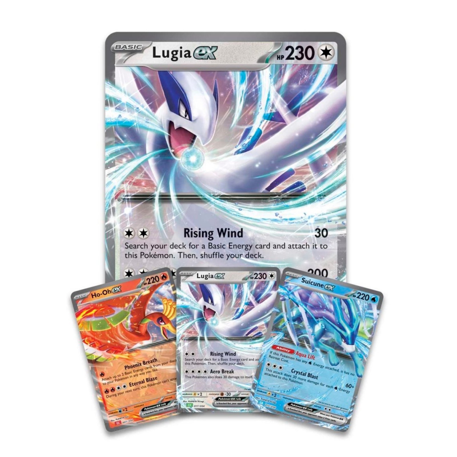 - 3 foil cards featuring Lugia ex, Ho-Oh ex, and Suicune ex